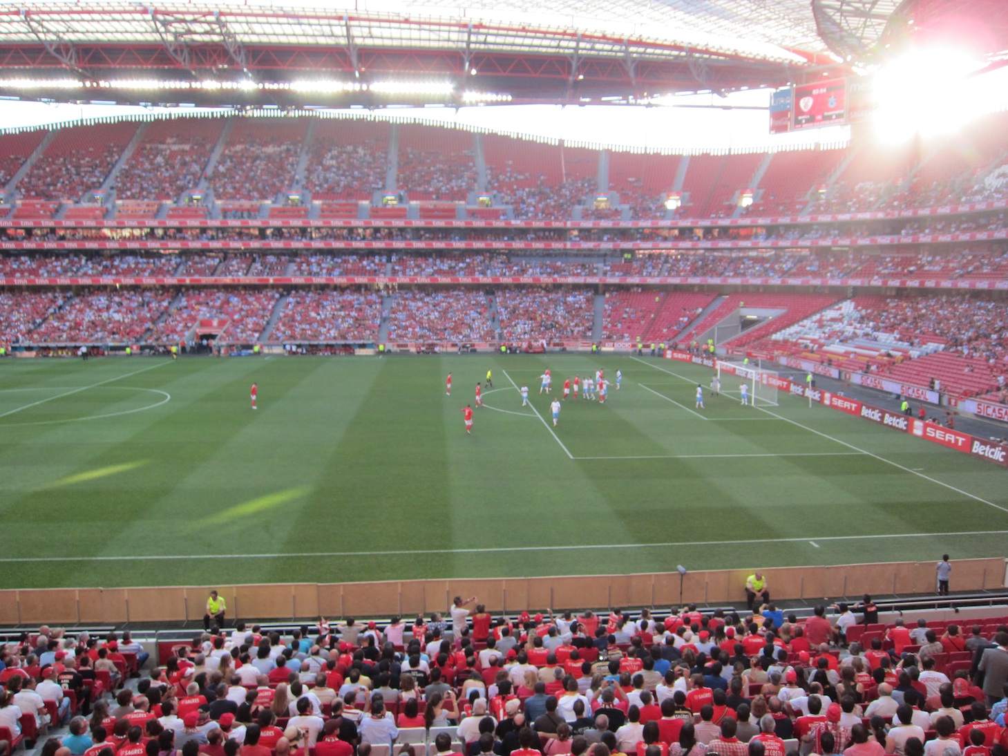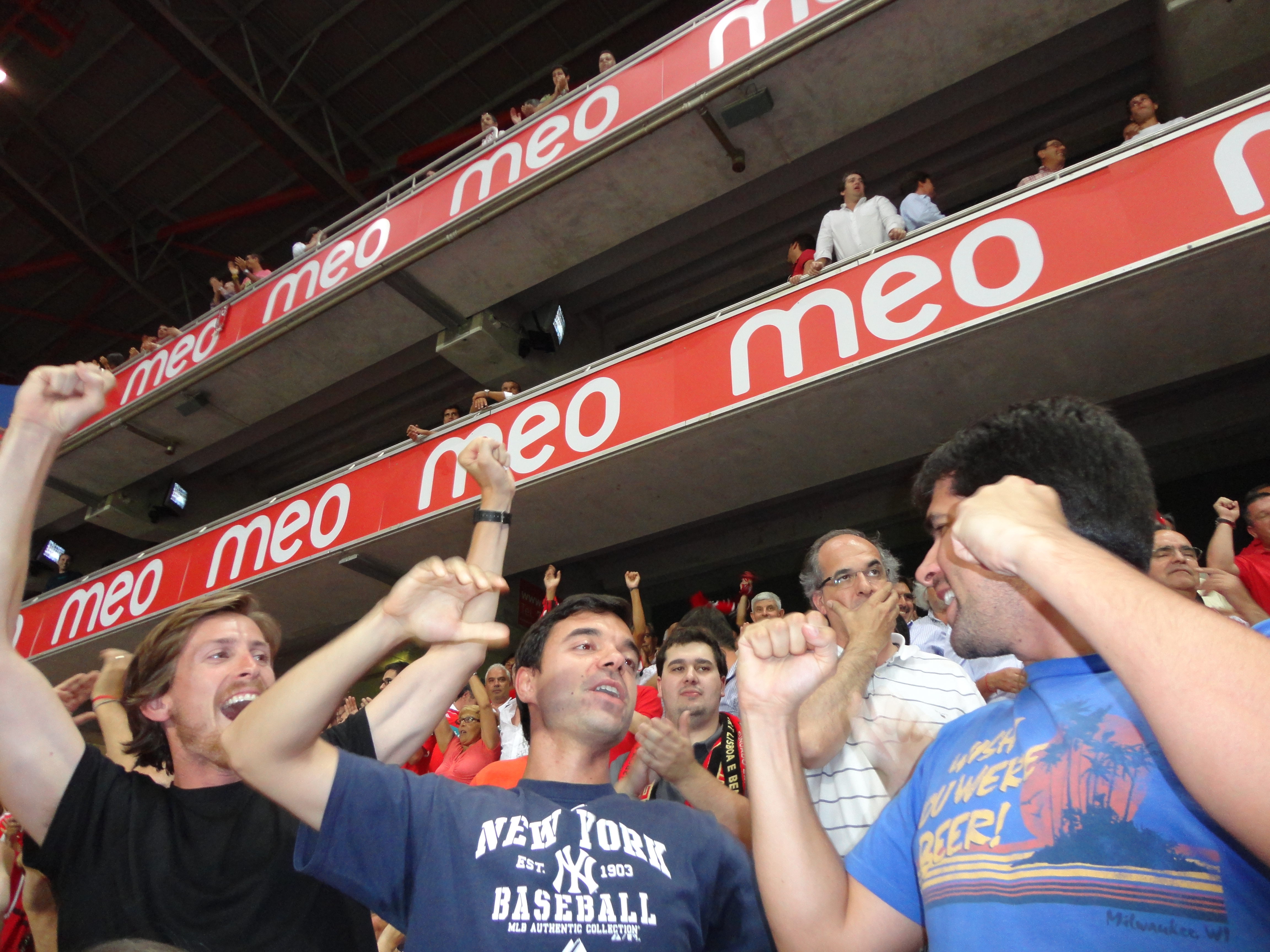 We woke up and enjoyed the last couple of hours in our amazing hotel. It’s probably one of the nicest places Anna and I will stay on our entire trip. We didn’t let leaving the beautiful Douro Valley get us too upset, though, because we had big plans for the evening. Big plans. We were going to a Benfica fútbol match. Goose and Kick are Benfica fanatics, and tonight the team was playing against Trabzonspor from Turkey in a Champions League playoff. I don’t pretend to know a lot about the sport of soccer (actually I feel like Eddie Murphy talking about football in “Coming to America”), but I do know it’s kinda a big deal in Europe. After a quick pit stop in Lisbon, we all loaded into Kick’s car and headed to the stadium. The game, err match, was intense! The crowd seemed to get more excited when the referee would blow a call than when the team did something good, and Goose taught me just enough Portuguese curse words to join in the fun. After a slow first half, Benfica picked it up in the second half to win 2-0. Our first European fútbol match was a success!