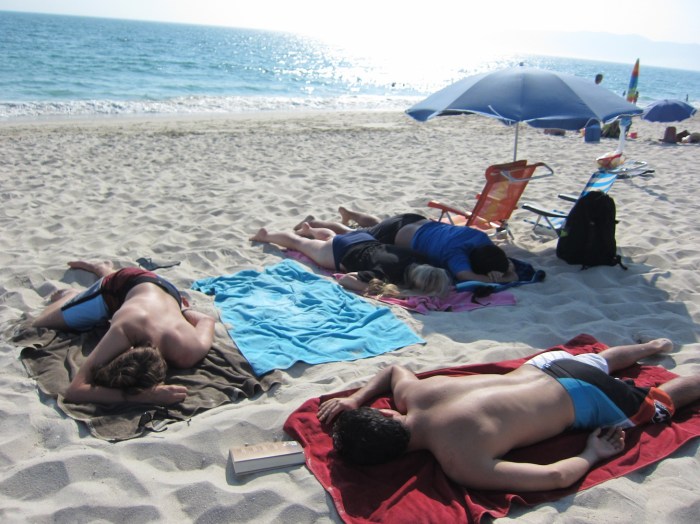 After the Benfica match we drove to Troia, a long cape near Lisbon where Kick’s parents have a vacation home and where many people from Lisbon come for a weekend break from the city. We got some perfect weather, so we spent a full day on the beach sipping on Super Bocks and caiparinhas. We needed a relaxing day after our whirlwind tour of the Douro Valley. That night we went to a really cool restaurant right down the road called Museo do Arroz (Rice Museum), which had great views of the rice paddies outside and where Sarah got the best grilled octopus of the trip. So what are two Portuguese dudes and three gringos supposed to do in Troia on a Thursday night? You guessed it, play Portuguese Pictionary. The wine was flowing at Kick’s place, and Pictionary quickly turned into a hilarious game of charades. Team John-Goose may have dominated, but everybody woke up with sore abs from laughing so hard.