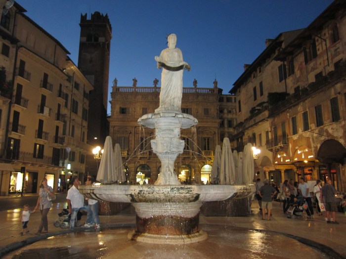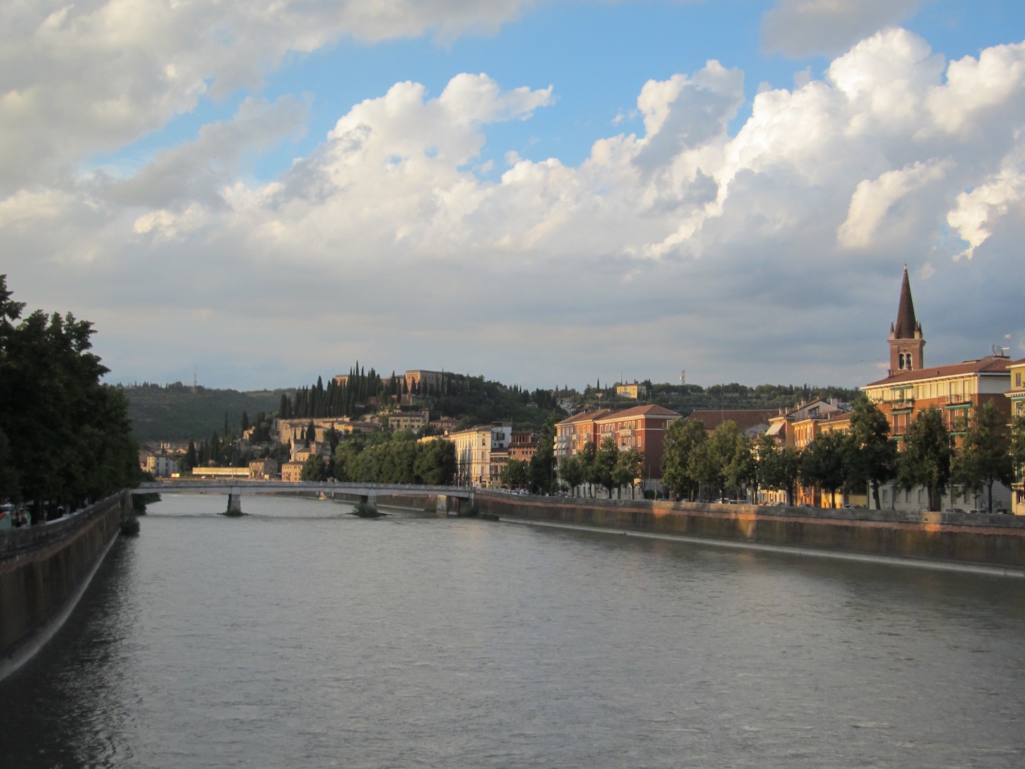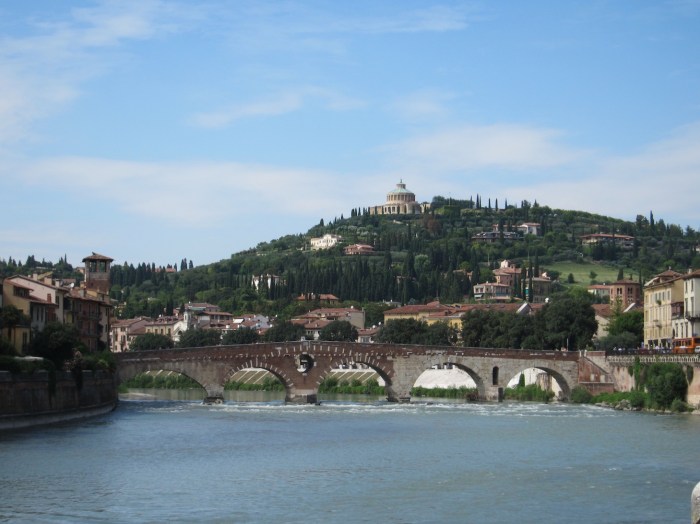 Verona is as lovely, if not more so, than I remember. Situated in a bend of the Adige River, it is bordered by beautiful bridges and castle-topped, cypress-lined hillsides. Every piazza, alley, fountain and fresco in Verona is picture-perfect.