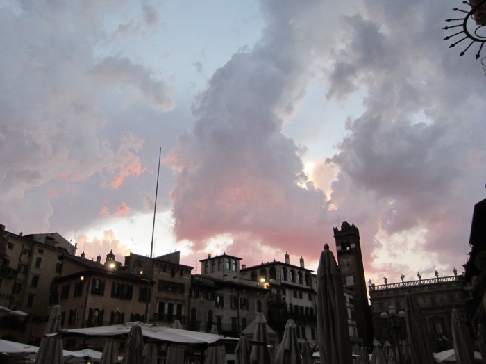 After settling in at our B&B, Lo Streggato, where we really enjoyed getting to know our hosts and their funny 6-year-old son Marco, we spent the week eating yummy breakfasts on their rooftop terrace, cruising through Verona’s picturesque streets, hanging out in Piazza Erbe, Piazza Bra and Piazza dei Signori, eating delicious meals, sitting alongside the river and climbing the surrounding hills to check out views of the city. It was a wonderful, relaxing week in a place that I love….and a place that I’m pretty sure Johnny loves now too!
