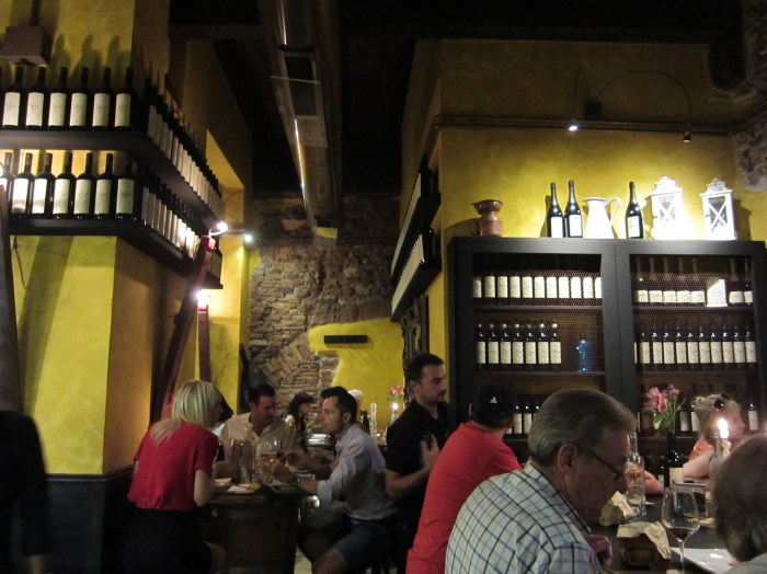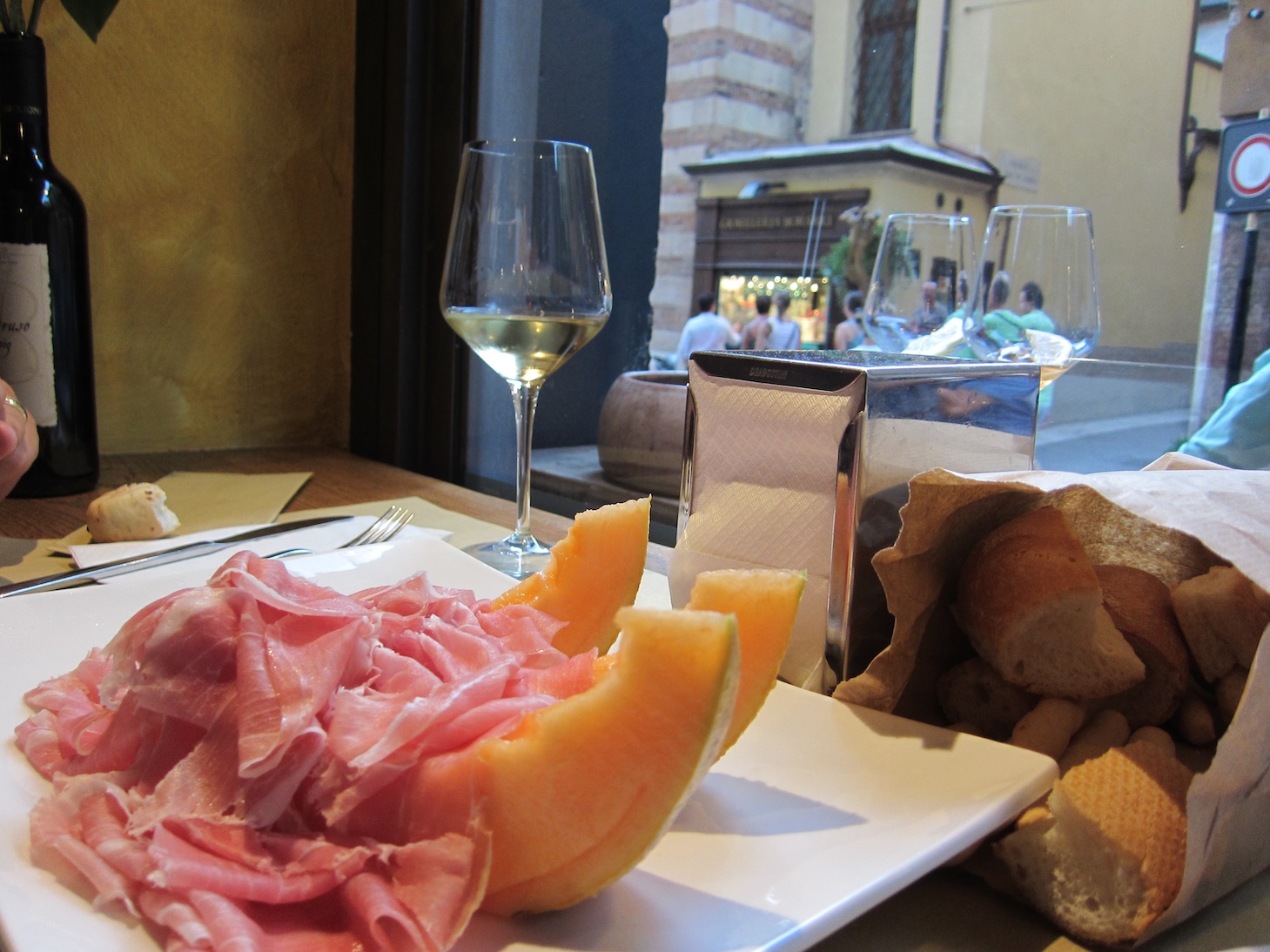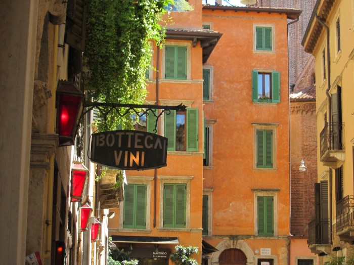 Because of my affection for this wine and for other wines in the Valpolicella (translated: “valley of many cellars”), we found a wine tour that took us into the surrounding countryside one afternoon. We had a wonderful time with another Swedish/English retired couple from Salzburg and our two Italian guides. The countryside is literally minutes outside of Verona’s city center, and we loved seeing the valleys dotted with medieval churches, villages and vineyards. The vines were heavy with grapes and we learned that the majority of the grapes are grown using the “pergola” system, resembling umbrellas, so that the grapes are more protected from the weather while still having access to the sun. Our tour led us to Fratelli Vogadori in the Negrar valley where we tasted Valpolicella Classico, Ripasso, Amarone and Recioto. One of the brothers (of Fratelli Vogadori) poured our tastings and explained that Amarone is so expensive because of how long the process is to produce the wine. An Amarone is rarely drunk less than 5 years after the vintage! We picked up a bottle for 18 euros (!) and were on our way back to Verona.