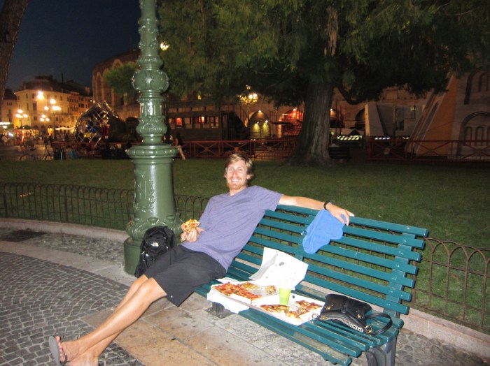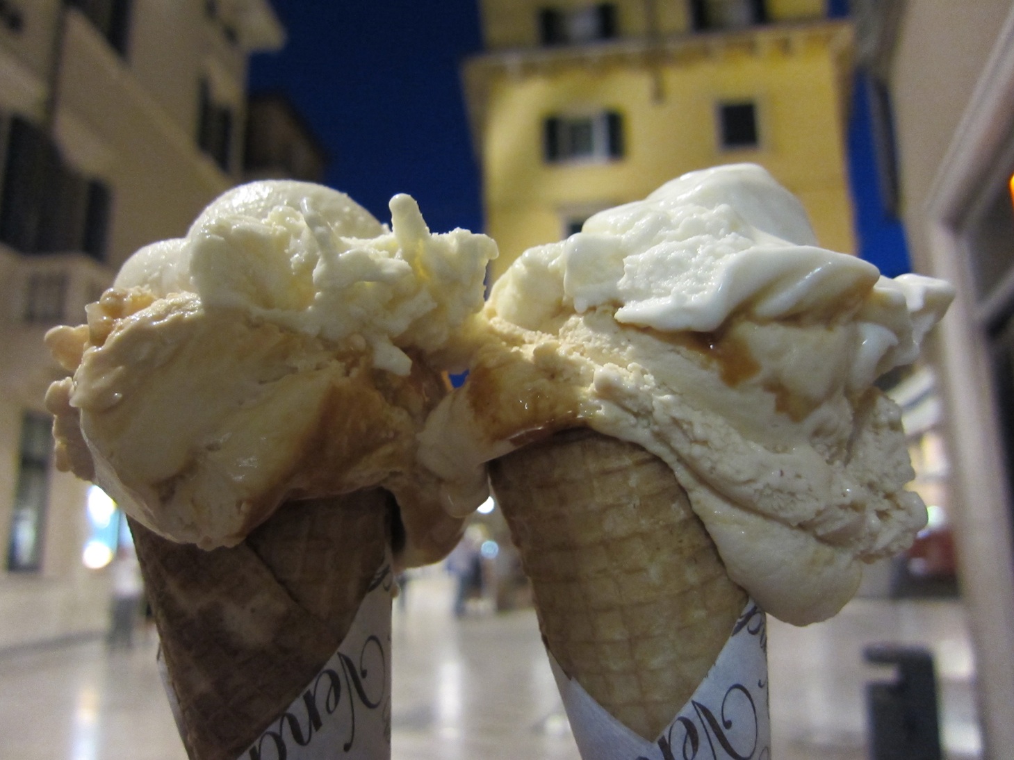 We had a day to fill between San Sebastian and Verona, and Lake Garda, Italy’s largest lake and only a 25 minute train ride from Verona, seemed like the perfect spot. I had been to Garda on a weekend trip from Verona in college and remembered it being really pretty. There are towns scattered all along the edges of the lake, and we chose Desenzano for our one-night stop. It was a charming start to Italy (and a reminder to Johnny and I of how awesome this country and its food are!), and Lake Garda was even more beautiful than I remembered! After a nap at our B&B, I managed to refill my empty stomach with some delicious pizza, and Johnny got his first gelato (strawberry, in case you were wondering).