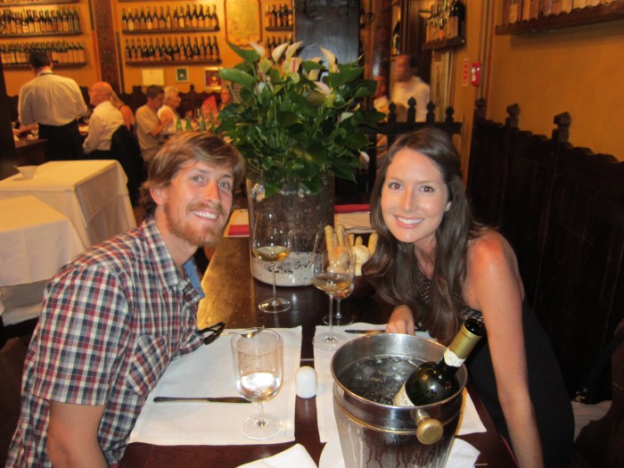 Night three ruled! We met up with Anna’s friend Jen, a Quiksilver alum, and her husband Juan Pablo for drinks and more gambas at Goiz Argi. Jen and Juan Pablo quit their jobs and traveled the globe for about eight months before settling in Madrid, and they just so happened to be in San Sebastian for the weekend (check out their travel blog). It was great to chat them up about their travel experiences and get some first-hand do’s and don’ts and must see places. The only problem is I’m now trying to figure out ways to add all of Africa and South America to our itinerary (please PayPal money to johnny@ciao-for-now). Remembering what it was like to be on a tight budget for so long, Jen and Juan Pablo picked up our tab at dinner. Say what?! Amazing, and greatly appreciated! We hope to pay it forward someday.