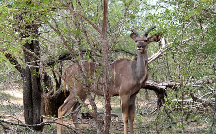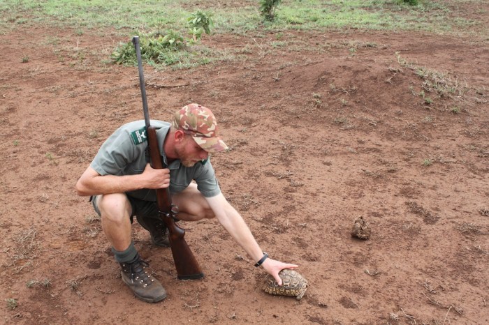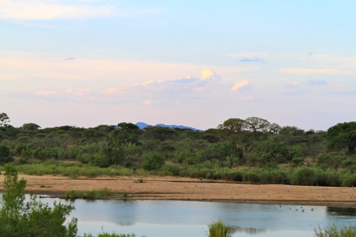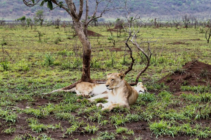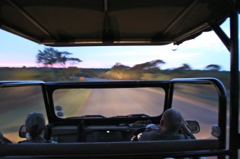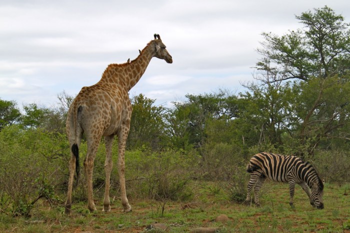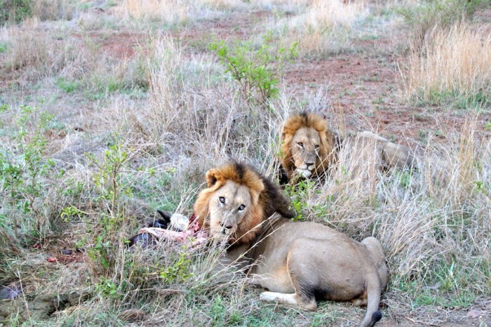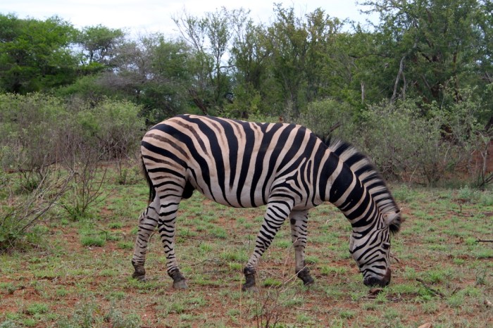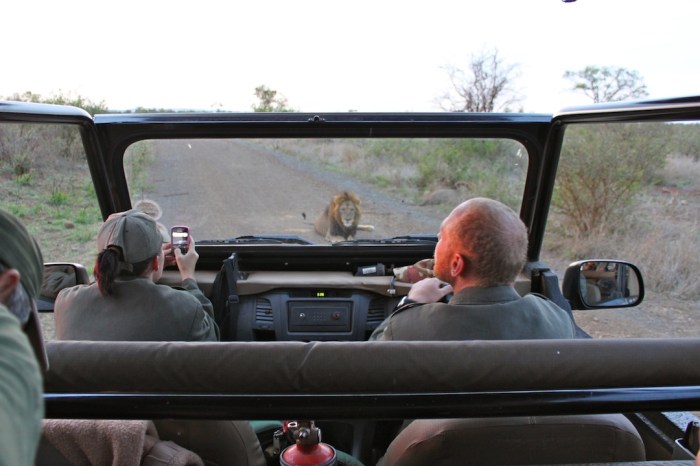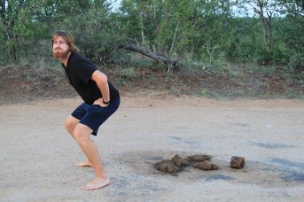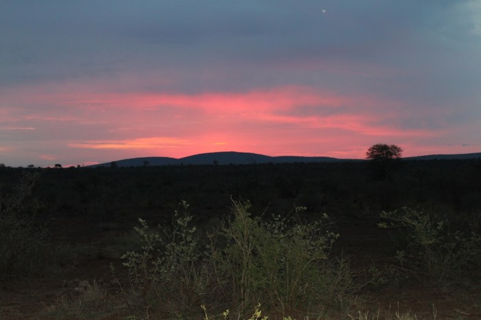 One of the highlights of our visit to Kruger was going on a 4:30am guided bush walk with Irving, the most macho park ranger of all times. This dude made Bear Gryllis look like Richard Simmons. He was a walking encyclopedia of wilderness knowledge with x-ray vision and the hearing of a jungle cat. We’d be walking along, and he’d stop in his tracks and say something like, “Rhino…800 meters to the southeast…female…25 months old…Sagittarius.” At one point, Anna couldn’t help but laugh when Irving spit out 20 minutes worth of facts about some male aardvark tracks we stumbled upon. Plus, he had such burly stories about tracking and being charged at by, as he put it, “big and hairies.” Beyond Irving’s awesomeness, being able to get out of our car and walk into the bush was an experience Anna and I will never forget. Oh, and on the way to our walk we drove by two male lions feasting on a fresh kill. It was such an amazing sighting that even our guides were taking pictures. We also took a guided sunset drive one night, which treated us to some cool nighttime wildlife sightings as well as the craziest lightning show we’ve ever seen.