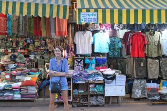 Last, but certainly not least, I couldn’t end this entry without talking about the markets! Johnny, who gets hives and breaks out in a cold sweat if I mention the word “shopping,” even got into the fun at the Old Market and Night Market. Our favorite market was  Psar Chaa (Old Market). You could buy everything from silk scarves to pigs’ heads to haircuts in the labyrinth of stalls and passageways. The vendors were all very good-natured and easy to barter with, which made negotiating (something I usually hate!) really fun. Johnny and I had to laugh because at the airport in Johannesburg leaving South Africa, we had 8 rand (approx. $1) left. We wanted to get rid of the rand before we left the country so we went on a mission through the airport to try and find something for $1… a pack of gum…a granola bar? Nope, nothing. We couldn’t find a single thing to buy with a dollar. In Siem Reap it was quite the opposite…the dollar was king. You could buy almost anything for $1 – a tuk tuk ride, 10 bracelets, 2 pineapples – we couldn’t help but load up on some souvenirs to send home and had a really fun time in the process.