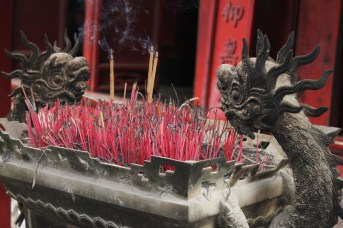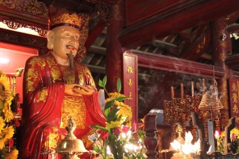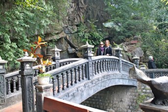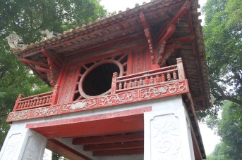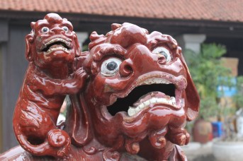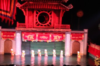 When we weren’t dodging scooters, we managed to see some of Hanoi’s historic sights.  We based ourselves in the city’s Old Quarter, which is pretty much a tourist attraction in itself with its ancient architecture and maze of narrow streets.  We really liked walking around Hoan Kiem Lake and found it to be an oasis of peace in this otherwise maddening city.  We also visited the Temple of Literature, which was built in 1070 and functioned as Vietnam’s first university.  But our favorite attraction had to be a water puppetry show at the famous Thang Long Theater.
