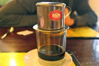 The market was chaotic and sensory overload. We couldn’t wait to try the new flavors that awaited us in Vietnam. We read on the menu of one of our favorite restaurants in Hoi An, Morning Glory, which “brought street food to the table,” that Vietnamese get homesick without fresh herbs and that dishes strive to achieve a balance between yin and yang. I’m all for this philosophy because all the food that we ate in Hoi An was amazing and has left me with a crispy pancake addiction and Johnny with a Banh Mi (Vietnamese baguette sandwich) addiction. We are also both most likely to OD on Vietnamese coffee before we leave the country, because it is so freaking delicious! It is served in a glass topped with a small metal French drip filter, only adding to the anticipation for the first sip as it drips slowly in front of you, the rich scent wafting up into your nostrils. We would switch back and forth between black coffee and white coffee (a sweet delight with condensed milk) depending on our mood.