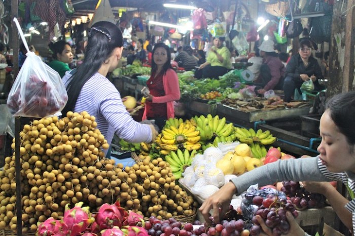 All sorts of items on offer at the market from pigs’ heads… …to dragon fruit