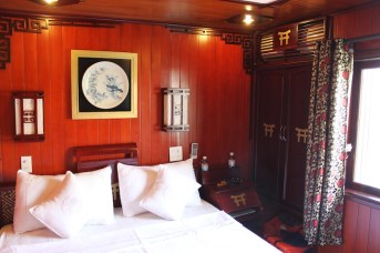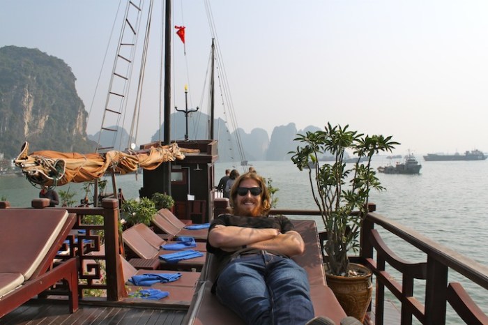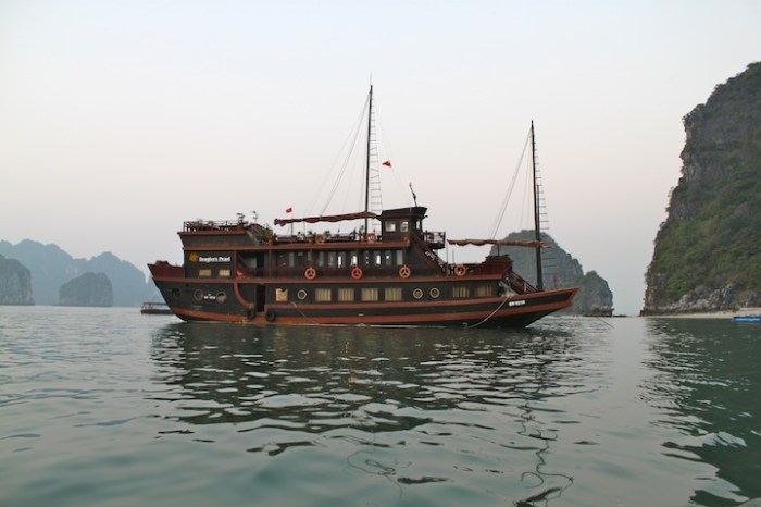 Hanoi was fun, fast-paced and crazy! After almost a week of dodging motorbikes and listening to a constant cacophony of horns, we were ready for some fresh air and peace and quiet. Ha Long Bay was the perfect overnight escape, and a destination that we’d both been looking forward to for a long time. Recently named one of the “New 7 Natural Wonders of the World” and already a UNESCO World Heritage Site, Ha Long Bay was one of those places that we’d read about and seen magnificent photos of and couldn’t wait to experience in person. With nearly 2,000 limestone islands steeply rising from tranquil green waters, the scenery did not disappoint.