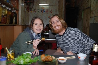The highlight of our stay in Hanoi was definitely a street food tour with Tu.  Tu was born in Nha Trang in central Vietnam, but has lived in Hanoi for the past 10 years writing the popular Sticky Rice food blog.  We really wanted to eat as much of Hanoi’s world famous street food as we could, and we figured having a local show us the ropes would be better than us running around the city pointing at menus we couldn’t understand.  The tour was fantastic.  It felt more like going out to eat with a friend than an organized tour.  Tu picked us up at our hotel and basically told us, “I’ll just keep taking you to my favorite places until you tell me you can’t eat anything else.”  For the rest of the night, Tu took us across the entire city and down all sorts of back alleys to his favorite food spots, and we were definitely the only Westerners to be found at each of them.  We must have tried at least 10 different dishes.  Although our tour was supposed to finish at 8:00 pm, it was nearly 11:00 pm by the time Tu dropped us back off at our hotel, where Anna and I immediately changed into our elastic pants for rest of the week.