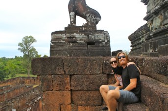 On our second day we headed out with Sol to see some of Angkor’s more remote temples.  Again we felt like treasure hunters as we explored the ins and outs of each temple.  Our favorites from day two were Pre Rup (surrounded by jungle as far as the eye can see), Banteay Srei (with its intricate carvings) and East Mebon (with its stone elephants).  It was also super cool riding our tuk-tuk through the Cambodian countryside and waving at the smiling villagers as we passed by.