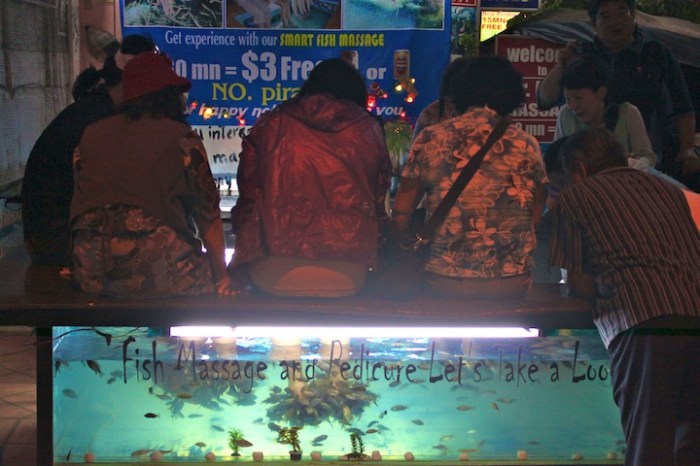 Some ladies brave enough to get the “Fish Massage” where tiny fish nibble the dead skin off your feet