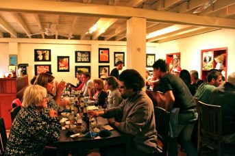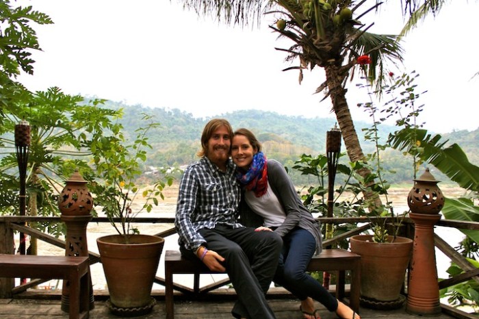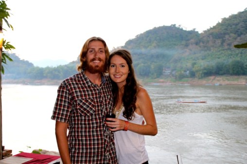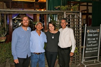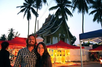 That night we had made Christmas dinner reservations at Tamarind, a restaurant we had read had delicious Laos cuisine. But before dinner we took a stroll through the lovely night market…most definitely the most laid-back, quiet, pretty market we have experienced in SE Asia to date. Johnny and I each picked out a “Christmas present” and then headed over to the river to Tamarind. The restaurant was set up in big long communal-style tables, and we immediately got to talking with our “neighbors” – couples from Philly, London and Paris. Towards the end of our meal, Johnny decided that we needed to try some “Lao Lao,” Laos’ rice whiskey that we’d heard a lot about. Since it was only about 50 cents per glass, Johnny ordered a round for our new friends…dangerous! One round turned to four rounds as each couple returned the favor. And then four rounds turned to six rounds as the guys decided that we should try some of the infused Lao Lao. I was pretty sure that my stomach lining had been obliterated after the chili-infused Lao Lao (basically like drinking fire!), but the ginger lime Lao Lao helped to ease the pain. The Parisian couple ducked out after round three of Lao Lao (smart), but the rest of us closed down the restaurant – to the extreme entertainment of the waiters who thought we were hilarious – and headed down the street for a Beerlao nightcap. We were saved by city’s 11:30pm curfew and headed home from our very fun and delicious Christmas dinner.