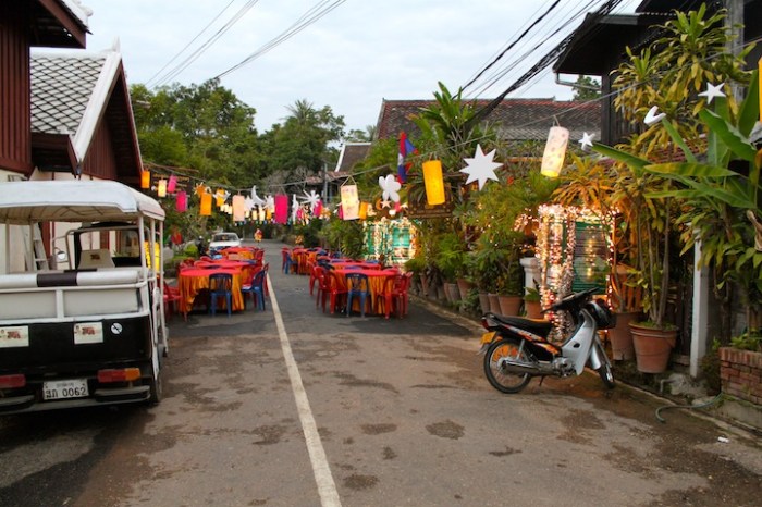 The streets around Luang Prabang looking very festive for New Year’s Eve