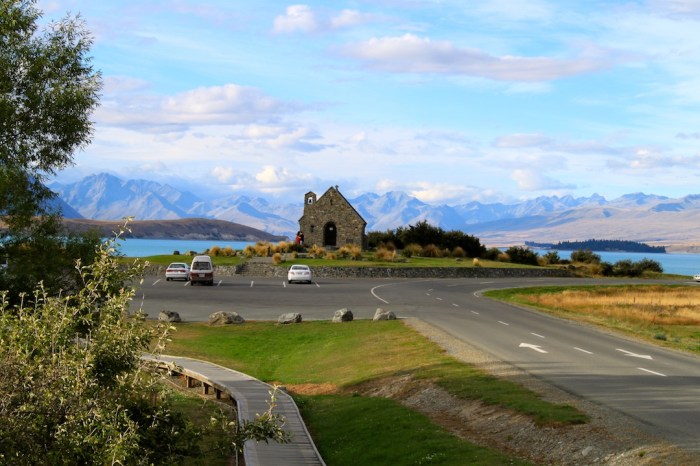 After a great couple of days in Kaikoura we packed up Big Red for our longest driving day of our South Island tour.  One thing we’ve quickly realized, though, is that travel days in New Zealand are kinda awesome.  The scenery everywhere is just stunning.  It’s definitely one of those “the journey is the destination” type places.  After driving south for about an hour we cut inland via the Inland Scenic Route 72, a beautiful drive through the region where the Canterbury Plains meet the Southern Alps.  We passed friendly farming town after friendly farming town, stopped for a great lunch in Oxford, and finally arrived at our next home base at Lake Tekapo in the heart of Mackenzie Country.