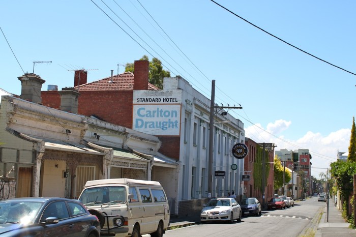 Besides not having paid for a pair of boardshorts in five years, my favorite perk of Anna working at Quiksilver is getting to meet so many interesting and creative people. Especially coming from the finance world, where I basically talk numbers all day, I find it fascinating to meet somebody who designs t-shirts or creates marketing campaigns. Case in point, Mark and Ed, aka the Urchins. Mark and Ed work at Urchin Associates, a creative and visual design studio in Melbourne who do a ton of work for Quiksilver.  We met Mark and Ed at their studio in the funky Fitzroy neighborhood and headed to lunch at the Standard Hotel with their entire team.  After lunch, a couple of the Urchins gave us a walking tour of Fitzroy down Brunswick St., across Gertrude St. and back up Smith St. Brunswick St., with its numerous cafes, music venues and vintage shops, reminded me a lot of San Francisco’s Fillmore St., while Smith St., which was a little rougher around the edges…or as Ed puts it, “full of lentils and junkies”…could pass for Haight St. We thought Fitzroy was so cool that we basically did the same walk a couple days later, this time stopping for lunch at the tasty Vegie Bar and some yummy brews at Little Creatures.
