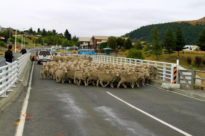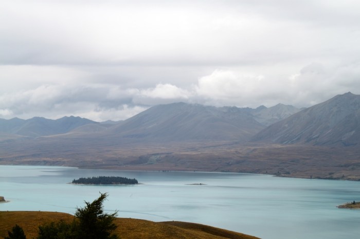 The sediment left behind by the stony-bottomed glacier that formed Lake Tekapo causes it and other lakes in the region to display an incredible icy-blue, turquoise color.  It’s like no lake I’ve ever seen before.  We spent our first afternoon admiring our new surroundings and BBQing some burgers in our cabin.  On our second day we hiked up to Mt. John for some lunch at the Astro Café, where we took in views of the entire Mackenzie Basin before coming back to our cabin and running into some serious New Zealand “traffic” on the one-lane bridge.  Later that night the clouds parted, and we were treated to some of the clearest skies and brightest stars we’d ever seen.  The entire Milky Way was visible…pretty awesome.  I’ll run out of adjectives if I keep talking about how beautiful the area is, so here are some pics.