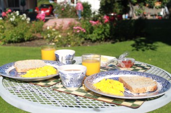 Our first stop was Blenheim, a town that is nothing to write home about but that is located smack dab in the middle of New Zealand’s Marlborough wine region. Marlborough produces about three quarters of the country’s wine and is world famous for its sauvignon blanc, so we had our work cut out for us. We tasted wines at Allan Scott, Bladen (our favorite), Hunter’s, Saint Clair and Wither Hills (great view), and while they were all yummy, our favorite part of Blenheim had to be our accommodation at St. Leonards. St. Leonards was recommended to us by my old SF roommate Kyle who had stayed there while traveling in New Zealand before working a crush at Amisfield (which, coincidentally, is where my brother Jay just took a job as a chef…more on that soon). Anywho, St. Leonards was awesome!  It’s basically an old farm that has been converted into five charming cottages…Anna and I had the Old Dairy and Pete and Susan had the Shearers Quarters…complete with a tennis court, a petanque court, sheep, chickens and friendly hosts Paul and Daphne.  In the morning we would cook some farm fresh eggs and toast with homemade lemon and lime marmalade…so good that we had Daphne write down the recipe for us.  In fact, we liked St. Leonard’s so much that we made all our meals there.  Breakfast, then wine tasting, then a picnic in the garden, then more wine tasting, then a BBQ at night…safe to say our South Island tour has gotten off to an awesome start.