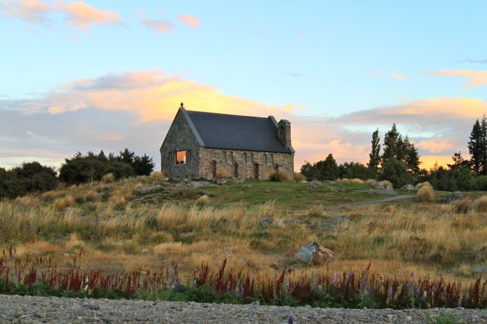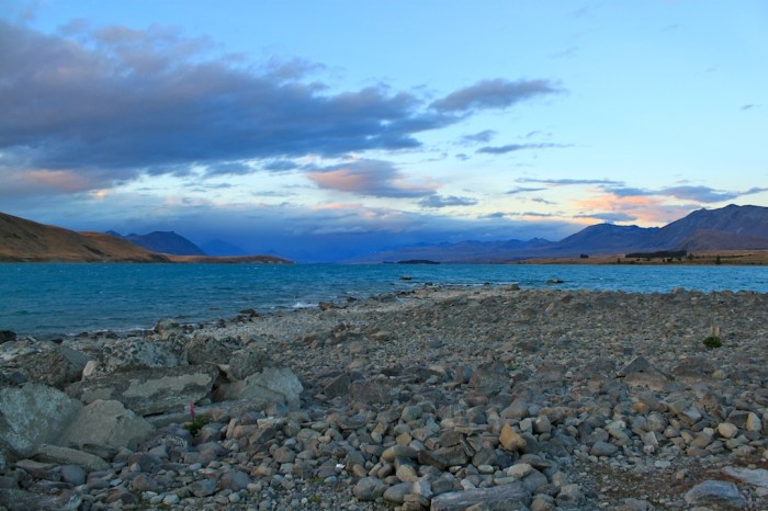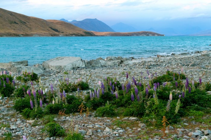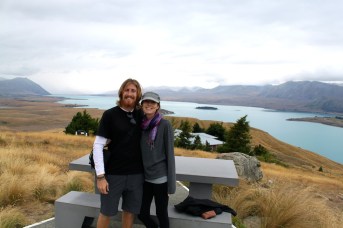 The town of Lake Tekapo is basically a gas station, a tourist information office and a couple cafes…in fact, we brought the town’s population up from 315 to a whopping 319 during our three nights there.  But whatever Lake Tekapo lacked on the cultural front it made up for tenfold with its natural beauty (are you noticing a theme, here?).  We rented an awesome cabin located a couple steps from the lake and just around the corner from the town’s famed Church of the Good Shepard and collie dog statue.