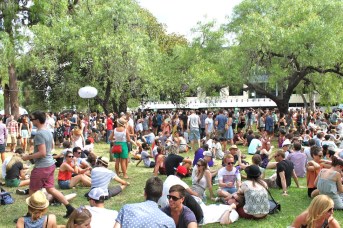 Hip Aussies hanging on the grass Girls at the Eat Your Own Ears stage
