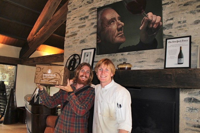 Since we had just missed Jay’s move to Italy by a couple of weeks on the European leg of our trip back in October, we were ecstatic that we’d finally have the chance to see him…and in New Zealand to boot! We were looking forward to lots of quality time with Jay once we got to Queenstown, but upon realizing that our drive from Lake Tekapo to Te Anau would take us right past Amisfield, we decided we had to make a surprise visit.