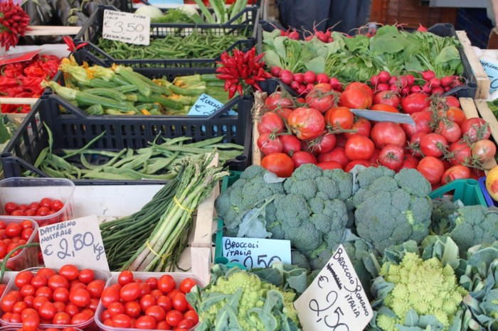 We met our instructors and the rest of our group (which consisted of some Canadians, a couple newlyweds from England and the Netherlands and a group of about eight Australian women) at 10:00am and headed to Florence’s Mercato Centrale to pick out our ingredients. One thing I love about Europe is going to a different shop and/or market for each specific ingredient. You get your eggs from the egg guy, your bread from the bread guy, your veggies from the veggie guy…and on and on. Today was no different. As a bonus, we got to taste about five different balsamic vinegars. That will wake up your palate.