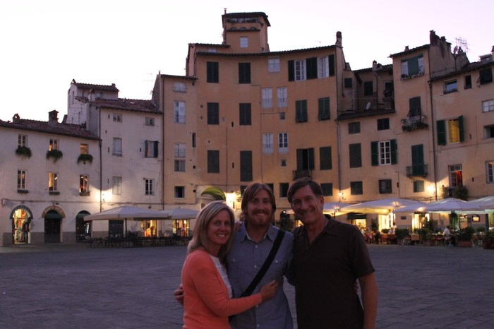 We were lucky to be in the beautiful town of Lucca for four days, but even luckier to be spending them with Jay and Linda!! We were overwhelmed with happiness to see Johnny’s parents when we met up with them outside of our beautiful little apartment in Lucca last week. The apartment was situated between a music school and an amazing garden full of cats, so we were constantly entertained by sounds of violins, pianos, flutes and harps streaming through our windows, and watching the 15 or so cats and kittens frolic in the garden below. We also had an unbelievable view of the Torre Guinigi which is easy to spot because of its tree-topped tower.