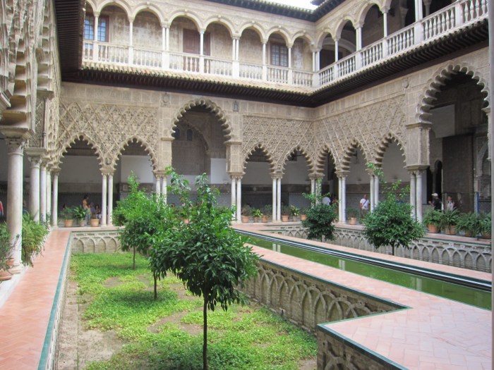 As far as Sevilla’s tourist sites go, the Alcázar takes the cake. It is probably the most impressive building we’ve seen so far on our trip. It was built in the 10th century while Sevilla was under Muslim control, so the Moorish style architecture and elaborate tilework were unlike anything we had seen in France. The entire place was a maze of hallways, rooms, patios and gardens, each more elaborately decorated than the next.