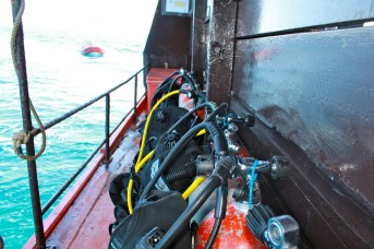 Leaning back after the dive at Shark Island
