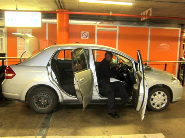 The Tiida was looking as beat up as we felt after our last of many 6-8 hour drives (yup, our hubcap was in the back seat)