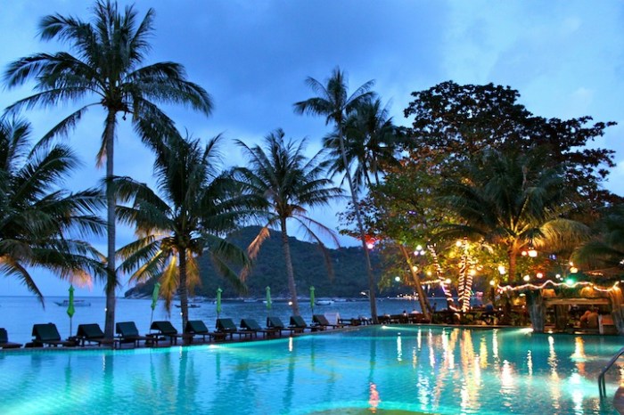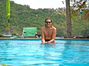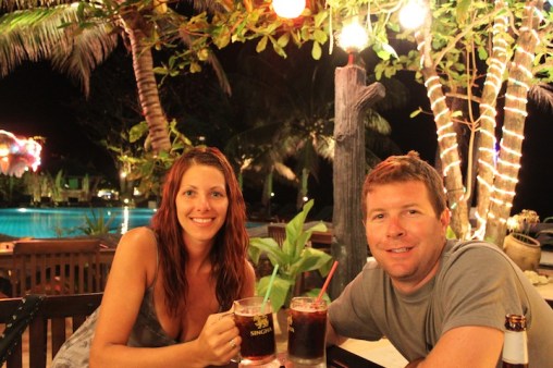 I had made big plans in my brain for our final week in the Thai islands after scuba diving in Koh Tao. We were going to head over to Krabi, check out Railay Beach, boat over to Koh Phi Phi and finally ferry down to Koh Lanta. Well, none of that happened. In fact, Anna, Peter, Sheryl and I headed straight back to Thong Nai Pan Yai on Koh Phangan. We all figured, why schlep our stuff all over southern Thailand in search of paradise when we had just come from it? Longtail Beach Resort was all booked, so we found rooms at Dreamland Resort, where $25/night got us a nice, clean bungalow and hot water shower. As a bonus, Dreamland has a gorgeous pool right on the beach…complete with swim up bar and super cool bartender, Ram. For the next week, we did nothing but hang by the pool, eat delicious Thai food, drink as many fresh coconuts as possible, light off a few more lanterns, catch up on our blog and reflect on an amazing couple of months in Southeast Asia.