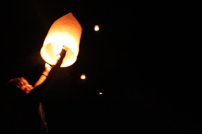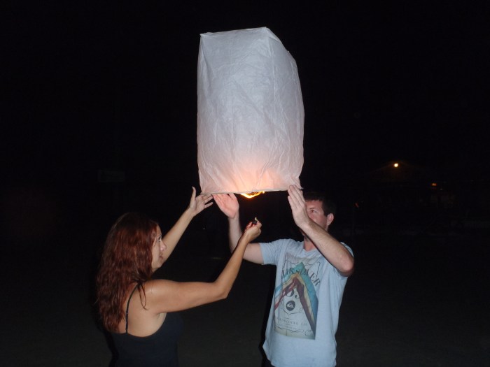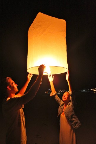 Writing wishes on our lanterns