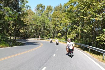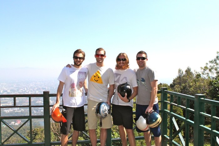 The fearless scooter captains take a high-five break at a scenic point on Doi Suthep