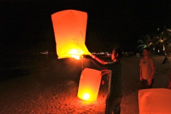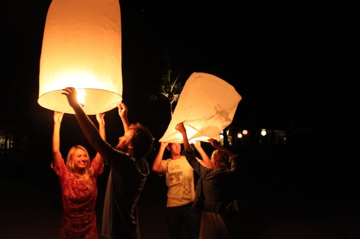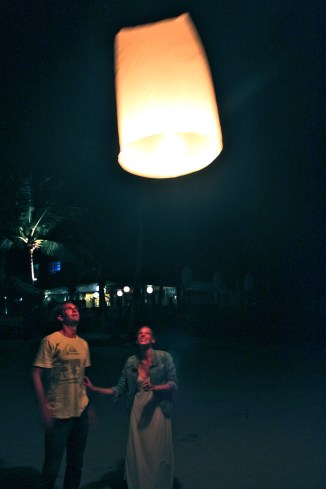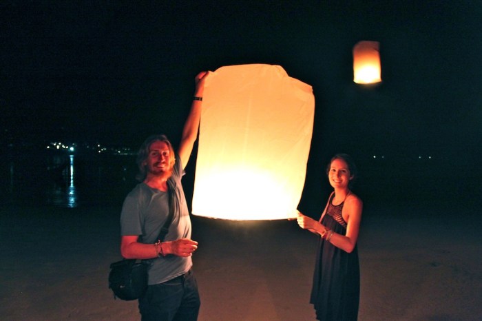 On our third and final full day, we took a longtail boat to Haad Khuat (otherwise known as Bottle Beach), regarded as one of the most beautiful beaches in Koh Phangan. Only accessible by boat, Bottle Beach felt even more remote than Thong Nai Pan Yai, and we spent the entire day drinking fruity drinks, playing cards, eating Thai food and frolicking in the water. Later that night, after our usual routine of some drinks in Tommy and Michelle’s Boat House, we grabbed a taxi to Thong Nai Pan Noi for dinner at the luxurious Santhiya Resort. With views over both bays, live music and dancing, and an all-you-can-eat Thai food buffet, we had a great final meal together. After dinner, Greg and Hillary surprised us with some sky lanterns they had bought earlier in the day, and we all took turns sending them off before heading to Flip Flop Pharmacy Bar for a final nightcap. What a perfect way to end an amazing week.
