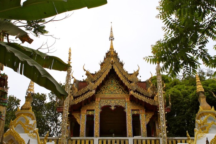 Chiang Mai, the old capital of Thailand and the cultural heart of the country, is packed full of juxtapositions…ancient and contemporary, European and Asian, natural and industrial. Walking down the street, one might pass a gilded temple buzzing with orange-clad monks, a food stall hawking mango sticky rice, a funky shop featuring wares from an up-and-coming Thai designer and a fashionable boutique hotel – all in the same block. Intrigued by this eclectic mix, we covered a lot of ground over the next four days on foot, by bike and by scooter. Our favorite area to wander was within the old walled city where we’d pop in and out of temples (wats), explore the market and food stalls (with mango sticky rice being the stand-out) and stroll along the moat that creates a giant square around the city center. We also navigated the crazy night market that seemed to stretch on forever, rode up Doi Suthep mountain to Wat Phrathat, tried some restaurants in the Nimanaman area known for its hip boutiques, cafes and university crowd, and checked out the nightlife at some spots along the Ping river. We even had a chance to meet up with our friend from Luang Prabang, Joel, at the lovely Ginger & Kafe restaurant.