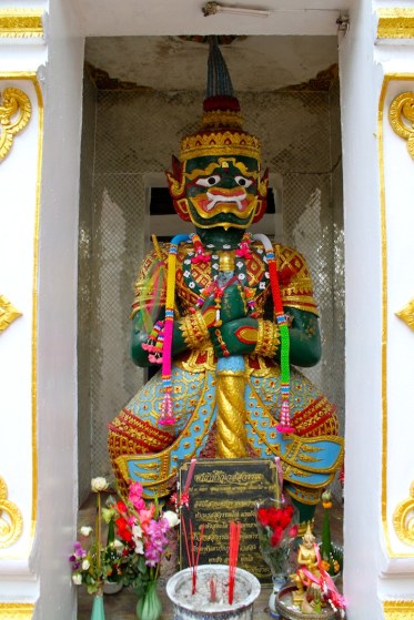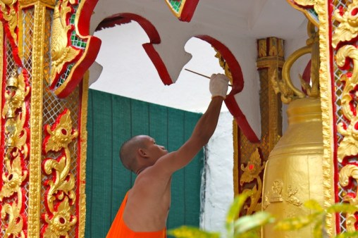 A monk touching up the bright paint