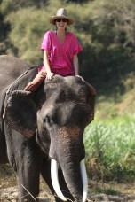 Hillary gracefully rises to her elephants head