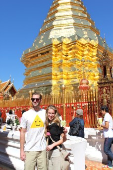Greg & Hillary in front of a gold chedi