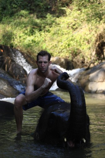 We proceeded to take about an hour-long trek on our elephants to a waterfall where we stopped to feast on a ridiculously delicious meal of sticky rices and coconut treats. Once we fed our elephants our leftovers, we were able to swim with our elephants in the river! We were all a little apprehensive that we’d be crushed by the elephants rolling in the water, but after my brother hopped in and tumbled on his elephant harm-free, Johnny, Greg, Sheryl and I followed suit and were pretty hysterical the whole time we slipped around with our big wet elephants in the water.