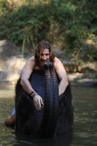 In the morning, once our elephants “chose us,” based on personality – kind of like elephant Love Connection -, we fed our elephants bananas and bamboo and checked to make sure they were happy and healthy by reading their body language, checking that they had slept correctly the night before, checking to be sure they were hydrated (did you know elephants sweat from their toenails??) and the best part – checking their poop! Not only did we have to count their dungs, but we also had to squeeze the masses to check for fluid and tear them apart to check that all was digested properly. Luckily the poop didn’t smell – another sign of good health! We then dusted the dirt off our elephants with leaves and bathed them in the nearby river.