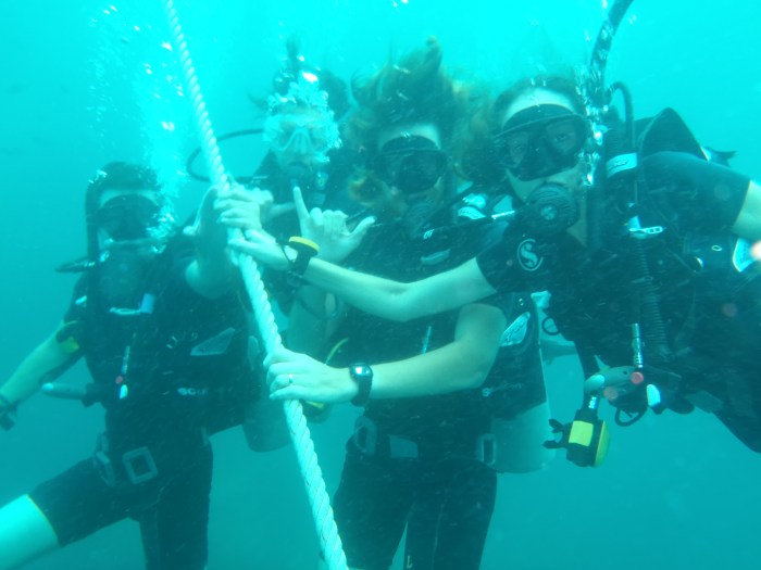 During the mornings and early afternoons we spent our time in a much quieter underwater world. Although a couple of our dive spots were a little crowded with other dive boats, we still had an amazing time swimming amongst the coral with the fish. On day one, we were paired with a bit of a Danish dive nazi, but on day two, we had the cutest little Swiss dive master named Vera, who was super fun and easy going. It was really exciting for Johnny and I to put our PADI skills to the test on our first ‘Fun Dives,’ and it couldn’t have been better getting to dive alongside my brother and Sheryl.